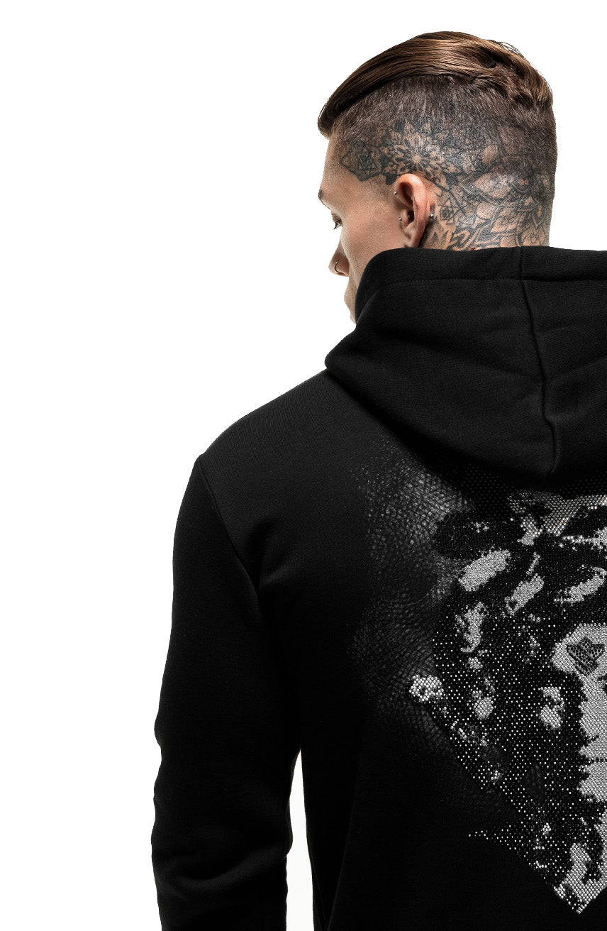 Questa felpa con cappuccio foderata in morbido pile di cotone presenta la stampa grafica mitologica di Medusa sul retro. Impreziosita da oltre 8.000 diamanti/strass applicati a mano per un effetto sorprendente.
